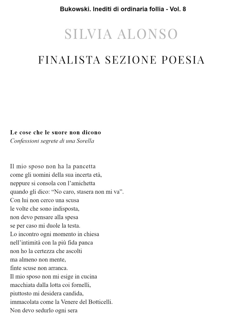 «Quello che le suore non dicono» la poesia di Silvia Alonso finalista al Premio Bukowski 2021 e pubblicata dalla c.e. da Giovane Holden nell’omonima raccolta AA.VV.