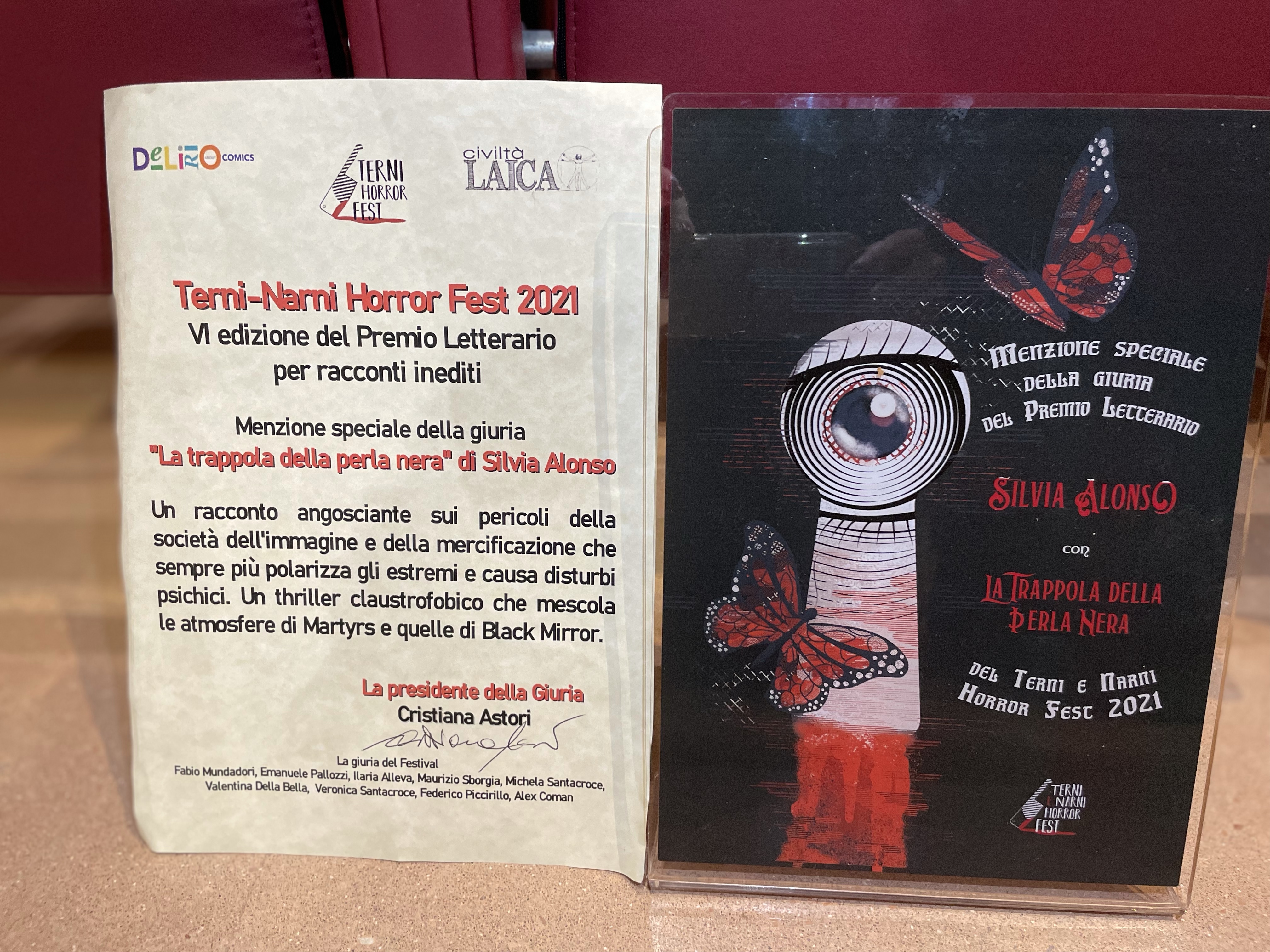 Racconto vincitore del Premio Speciale della GIURIA al TERNI NARNI HORROR FESTIVAL (1.11.2021), Presidente di Giuria Cristiana Astori