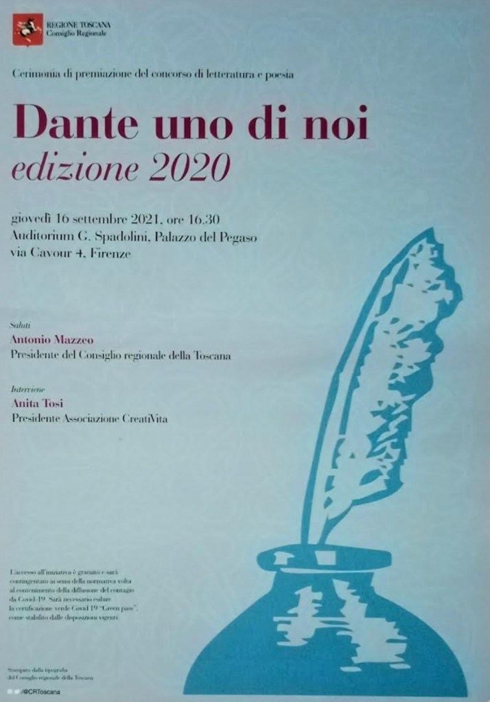 Premiazione del 16.09.21 a Firenze, presso l’Auditorium del Consiglio Regione Toscana- Associazione Creati-Vita