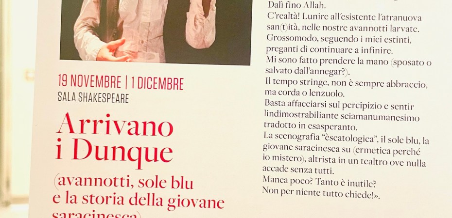 Bergonzoni ci regala uno spettacolo al di là di ogni categoria, è lo Zaratustra dell’ironia, l’ Houdini della presenza scenica.